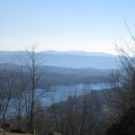 Sixteen years ago, The Ox and I did a winter ascent of Coosa Bald (4,271 feet) via a spur off the Coosa Backcountry Trail. I remembered a few campsites scattered near the summit and decided to return via a much shorter route this time. Coosa Bald is located near (and approachable from) Vogel State Park, and we stopped at Neel’s Gap a few miles South of the park. The store was busy on this cool and clear weekend, and The Weasel snapped this photo of hiking boots hanging in the trees over the Appalachian Trail hiker hostel. It seems that more than a few thru-hikers have discarded their boots here.