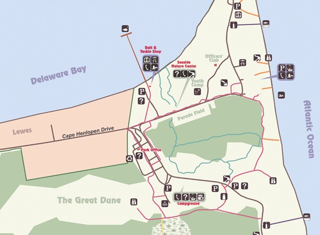 - click for a park map of Cape Henlopen State Park