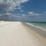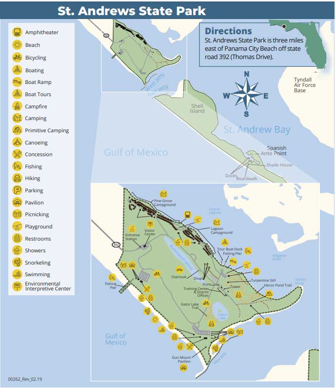 Shell Island is a beautiful, mostly undeveloped barrier island that offers a pristine natural beach & wildlife experience. The island is located on the panhandle of Florida and is accessible by boat from near Panama City Beach. St. Andrews State Park offers ferry service to the island and private boat shuttles are available nearby. Some of these vendors also rent pontoon boats which is another option for accessing the island. Shell Island is about seven miles long and runs between St. Andrews Bay and the Gulf of Mexico. The island is undeveloped: has no restaurants, no restrooms, and very minimal infrastructure. It is adjacent to and part of St. Andrews State Park and it is a natural barrier island with sand dunes, coastal scrub, and wildlife habitat.
