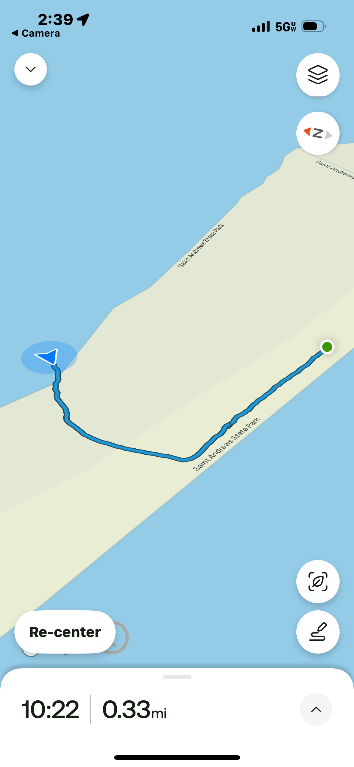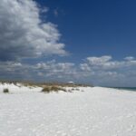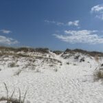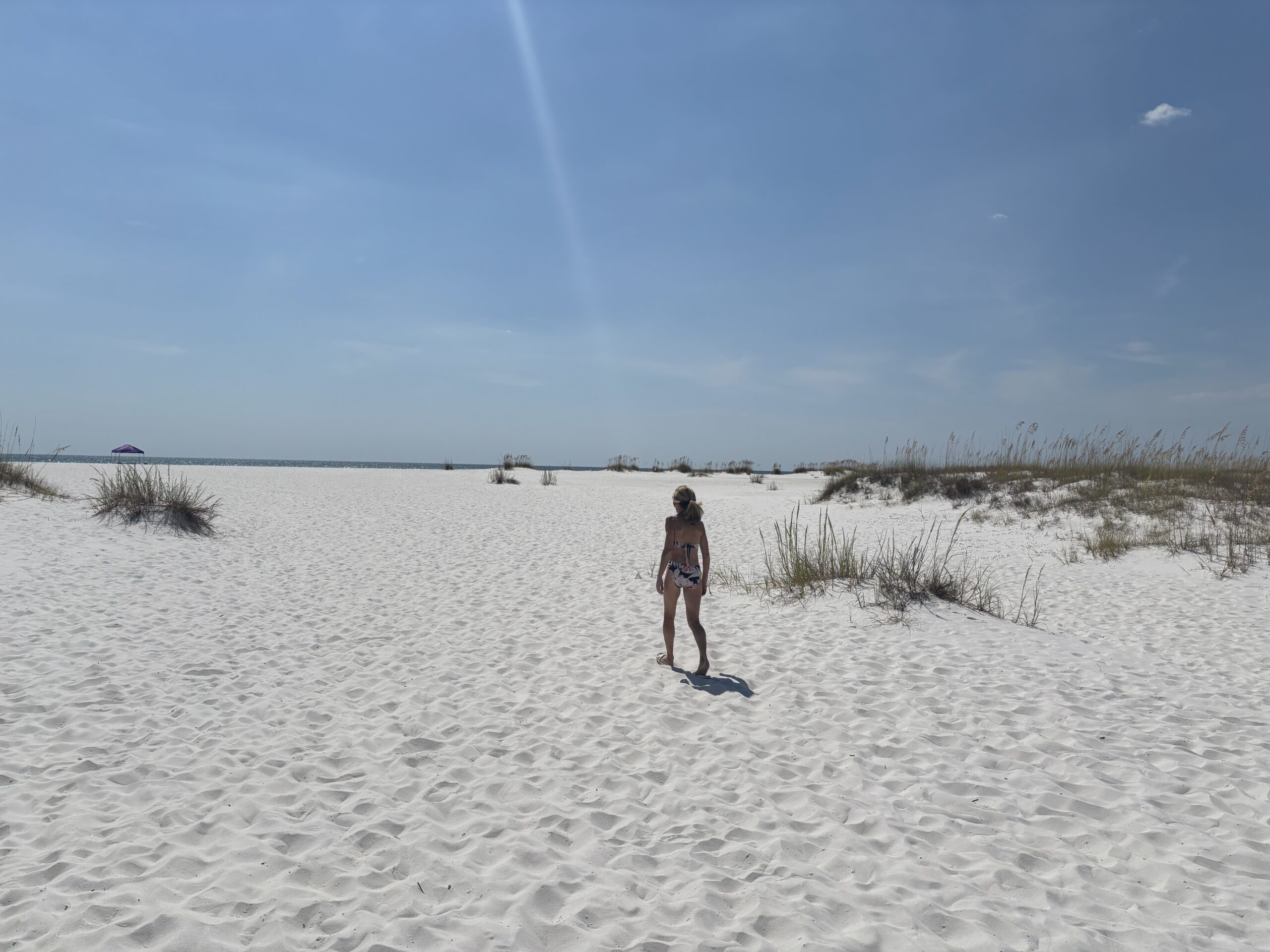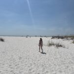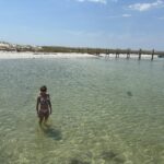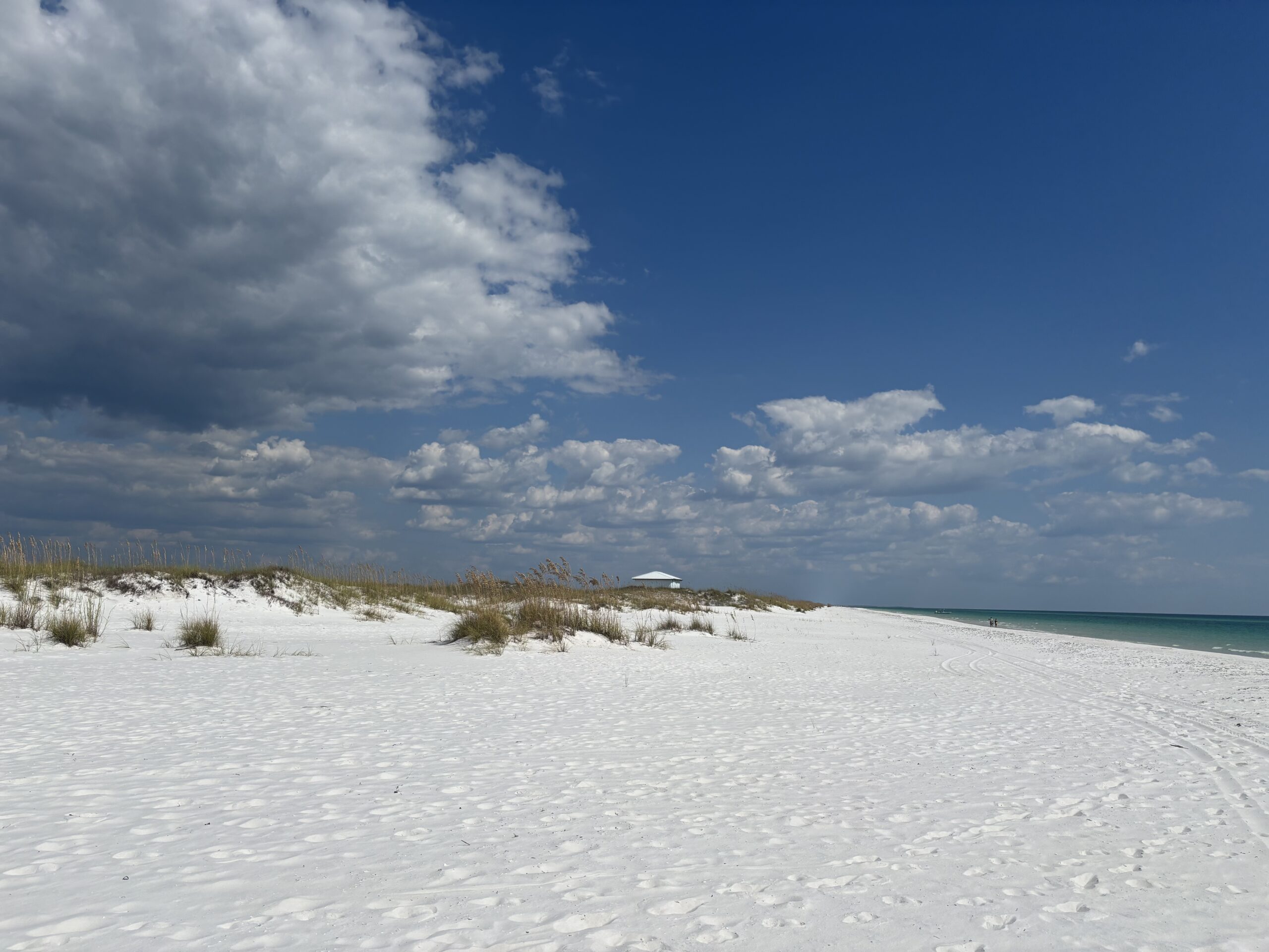 Hiking on Shell Island is mostly “off‐trail” or along the beach. There is both a Gulf and beach side of the island which offer different experiences. The bay and Gulf side is calmer with grass flats and shallow bays where boats can anchor and visitors can wade in shallow water to shore. The ocean side has more wind but offers a pristine white sand beach to explore. On our hike we walked from the gulf side to the ocean side and explored the beach for a few hours – but you can essentially create your own route here. If you prefer more traditional trails, St. Andrews State Park has two blazed trails a short distance (or boat ride) from Shell Island.