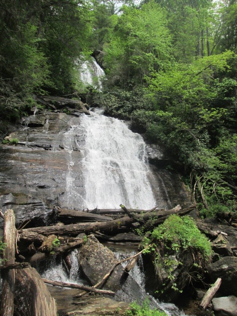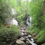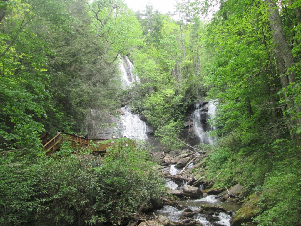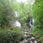 On this hike, we drove a short distance from Fish Camp at Smithgall State Park to the Anna Ruby Falls Recreation area for a short hike to the waterfalls.  Anna Ruby Falls is a stunning twin waterfall located near Helen, Georgia, within the Chattahoochee‑Oconee National Forest. The falls are formed where Curtis Creek and York Creek converge before joining the Chattahoochee River – creating two distinct, side-by-side cascades that drop approximately 153 feet in total. The area is managed by the U.S. Forest Service and features a paved 0.8‑mile loop trail from the visitor center, making it accessible for families and hikers of all skill levels. Visitors can enjoy scenic overlooks, picnic areas, and interpretive signs explaining the local flora, fauna, and geology. Anna Ruby Falls is one of the most popular natural attractions in northeast Georgia, especially in spring when the water flow is highest and the surrounding forest is lush and vibrant.