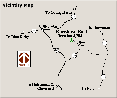 - click for a trail map of this hike to Brasstown Bald