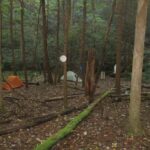 This short hike on the Appalachian Trail is located in the Chattahoochee National Forest at Cooper’s Gap in north Georgia. It begins at USFS 42 and climbs over Justus Mountain (3212 feet), drops briefly on the A.T., then climbs again to Ball Mountain (2704 feet). From here, it’s a short decent down to Justus Creek and a campsite bearing the same name with a few areas for tents. The area is heavily wooded and the water source is the creek. There are no formal shelters at this site, but it has tent pads above the creek. The Georgia Appalachian Trail Club (GATC) designates Justus Creek as one of the three designated camping spots (along with Hawk Mountain and Blood Mountain) in the Georgia A.T. corridor.