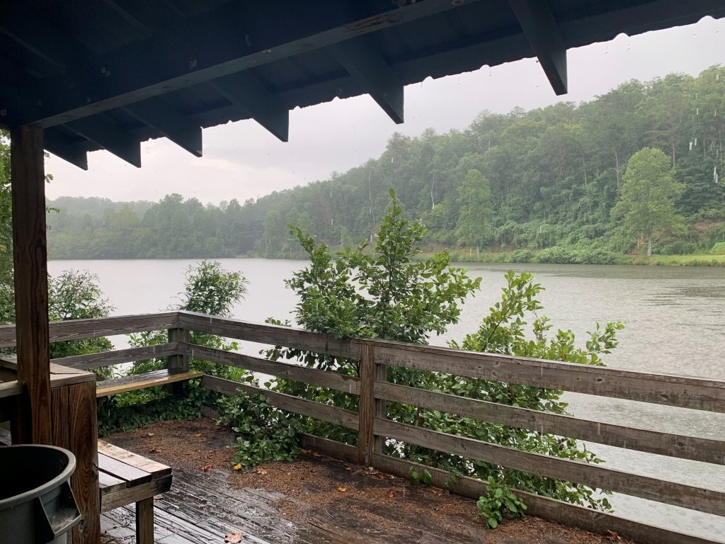 - click for a video of me sitting out a rainstorm at the fishing dock shelter at Lake Louis