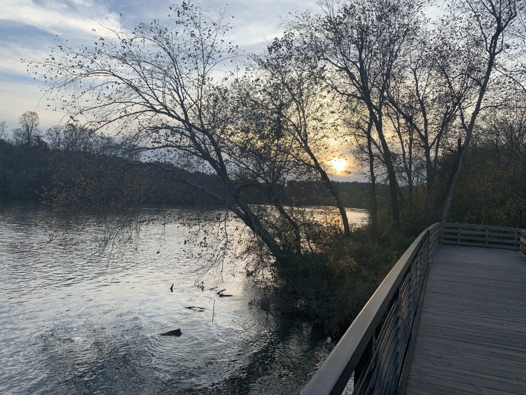 The Roswell River Boardwalk is a multi-purpose greenway that parallels the Chattahoochee River and is part of the overall Roswell Riverwalk that runs across Bull Sluice Lake from Azalea Drive to Willeo Road. It is a popular walking path for residents of metro Atlanta – particularly on weekends or at the end of a work day. Dogs are permitted on the boardwalk but must be on a leash.  This hike starts at a small parking area at Willeo Park and follows the boardwalk upstream and along the Chattahoochee River to the Nantahala Outdoor Center. It combines the boardwalk with a paved path and to follow the river past the Chattahoochee Nature Center then along Azalea Drive. There are multiple parking areas and walks that you can do in this area – but this is the most scenic section.