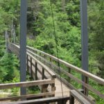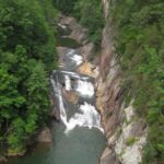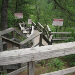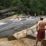 Permits are required for all people accessing the gorge floor or for rock climbing/rappelling. The only approved trail for entering or leaving the gorge floor is the Hurricane Falls staircase. Trails entering or exiting the gorge, as well as those on the gorge floor, are very strenuous. This hike is no exception. It starts at the visitor’s center, descends along the Hurricane Falls Staircase, then follows the Tallulah River downstream to Bridal Veil Falls. The section from Hurricane Falls to Bridal Veil Falls is unmarked and “unofficial”. It is very difficult and should only be done with excellent footwear (no sandals or crocks) and by those that are in excellent physical condition. The reward, however, is a wild ride along a smooth rock face down Bridal Veil Falls that dumps into a pool at the base. In hot weather, it’s a great way to spend the afternoon. One suggestion – get there early. There are a limited number of permits and they go fast in the summer months.