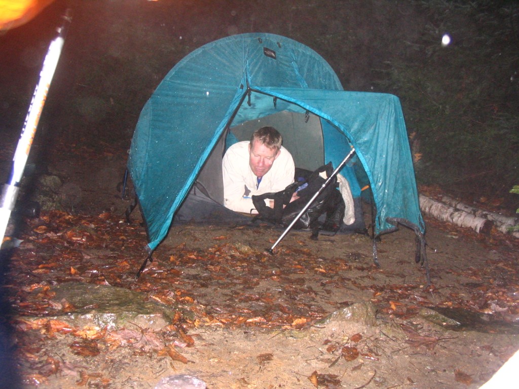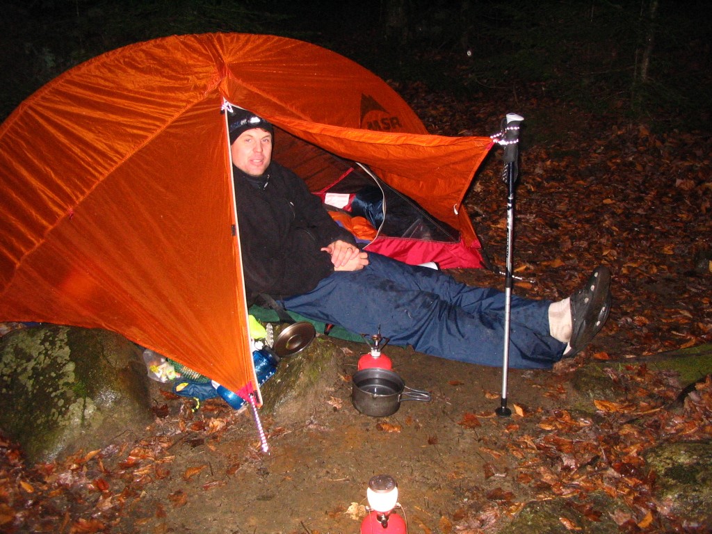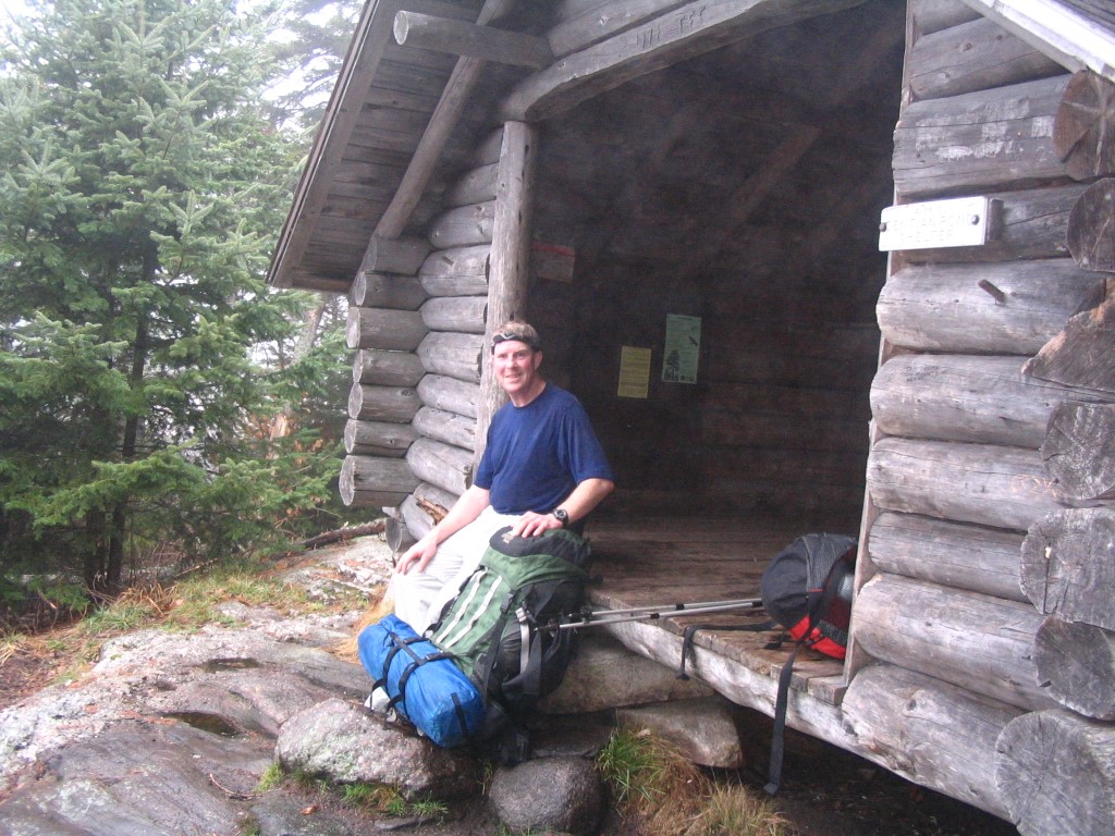 Gentian Pond is a small alpine lake situated at 2165 feet along a ridgeline northeast of Gorham. The Appalachian Trail passes right in front of the Gentian Pond Shelter which is a small multi-level structure with two platforms for sleeping. The Camel and I were quite happy to find this shelter after climbing up 3.3 miles to the ridgeline. It was being pounded by strong winds from the south when we arrived, and the clouds were depositing their excess water on the ridge as we hiked the remainder of the day. To reach the shelter, we climbed 1700 feet from the North Road to Gentian Pond via the Austin Brook Trail which was a great place to break for lunch.