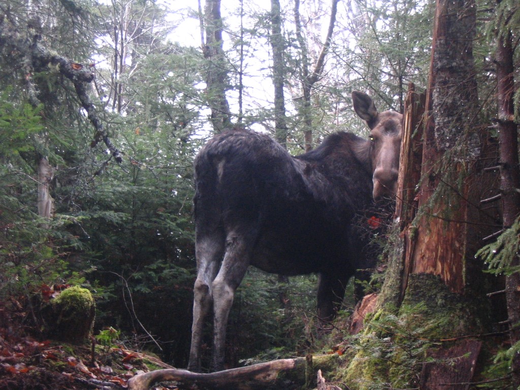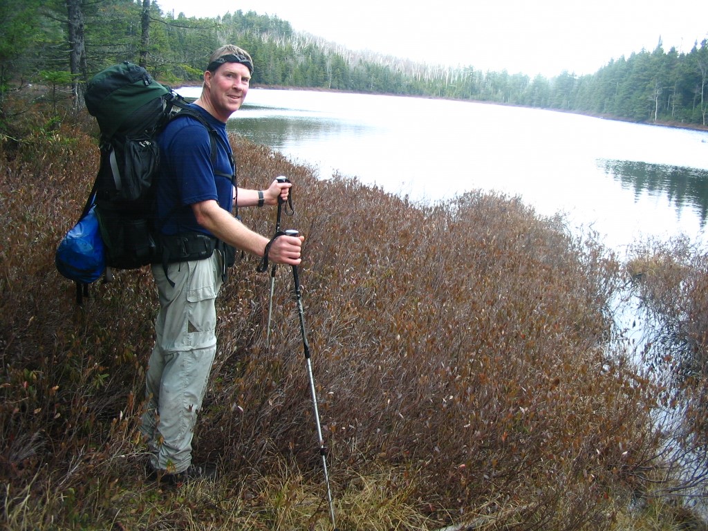 The remainder of our route followed the A.T. back to U.S. 2 for a total hike of 15.4 miles – scrambling up and down numerous rock formations and crossing many a bog bridge in the process. Along the way we passed Gentian, Moss, and Page Pond and also traversed the larger and more scenic Dream Lake. A large bull and cow moose startled us just before Page Pond, but ambled off as we snapped some photos. We missed the dramatic views from Cascade Mountain and Mt. Hayes due to overcast and wet conditions, and after a night at the Trident Col Campsite we returned to U.S. 2 where the A.T. crosses the road just outside of Gorham. The trail from Gorham, NH to Stratton, ME is arguably one of the toughest sections on the A.T. It is rugged, rocky, and wild. However, there is significantly less trail traffic here, and you are likely to enjoy the remoteness once again, especially after traversing the heavily populated mountains of the Whites.