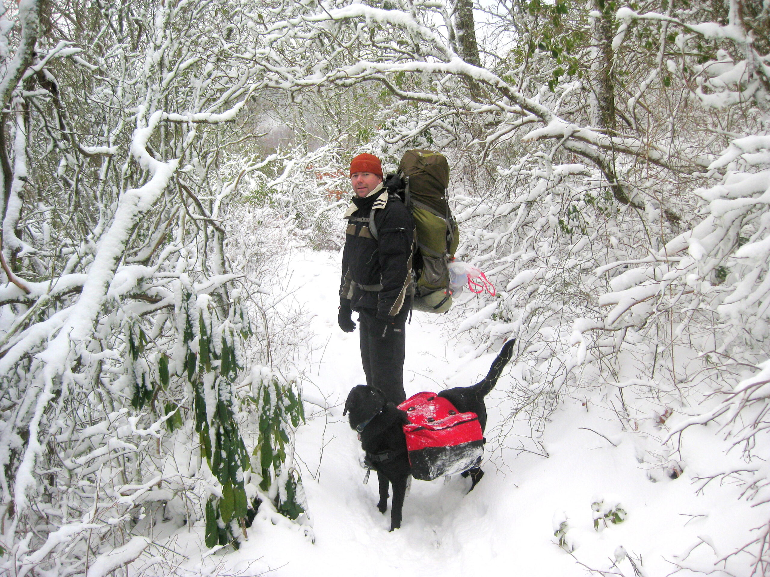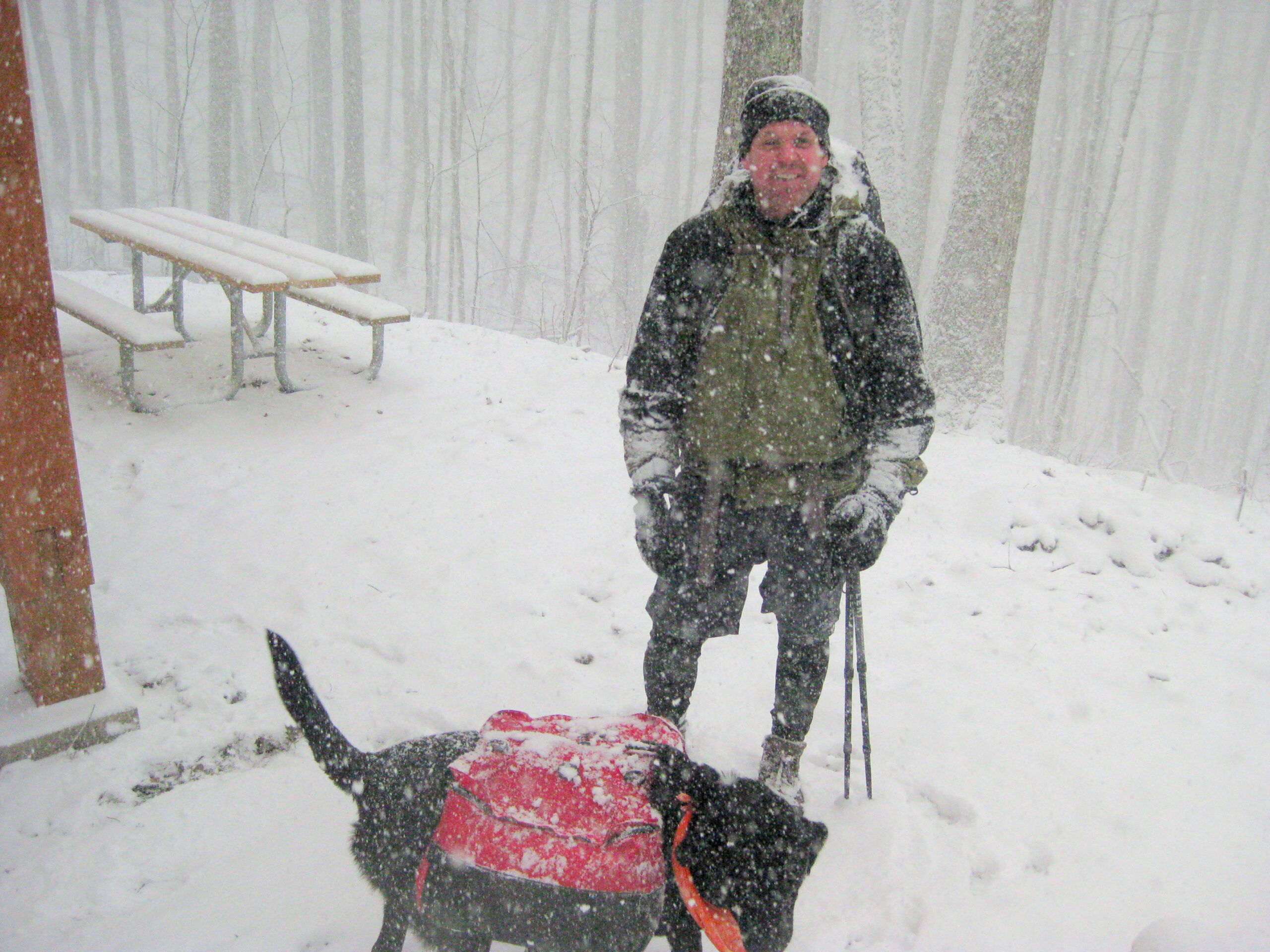 - click for a video of Boone Dawg’s first snow hike and 50 degrees & sunny?