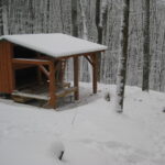 Standing Indian Campground is located about 20 minutes from Franklin, N.C. and is open from April through November. A number of hiking trails start just past the campground and climb to the Appalachian Trail – which has elevations in excess of 5000 feet in this area. This hike starts just past Standing Indian Campground and follows the Long Branch Trail 2.0 miles and 800 feet up to the Appalachian Trail at Glassmine Gap. From here, the route turns to the right and climbs another 250 feet to the headwaters of Long Branch Creek where a shelter built in 2012 resides only a few tenths of a mile off the trail. The structure is two-story and has a picnic table, fire ring, and roomy privy situated in the back.