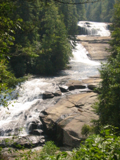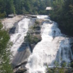 This easy to moderate loop at DuPont State Forest hike starts at the Hooker Falls Parking Area and ascends past Triple Falls to High Falls where there is a covered bridge accessible via a side trail at the top. Both falls are spectacular with access trails to their base and excellent opportunities for photographs. The Triple Falls Trail turns north just past High Falls for a pleasant loop hike that is suitable for all ages.  The park is open daily from 5 a.m. to 10 p.m. with free admission.  There is also the Aleen Steinberg Visitor Center located at the High Falls access point which has maps, free Wi-Fi, and restrooms.