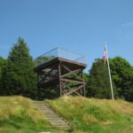 This hike starts at the Tiverton town hall where you can park then cross the street and walk uphill to the tower. From there there is a 1.75 mile loop that heads East through a forested area, passes near a shooting range (which you may hear in the distance), then follows the loop West again to the trailhead. There are actually blazes for both a the red trail (which is the 1.75 mile loop) and some blue trails which allow you to hike a shorter route. The are also a series of small bridges on the route, but it can get muddy in this area. So prepare accordingly. The views from the tower to the Sakonnet River (and bridge) are outstanding.