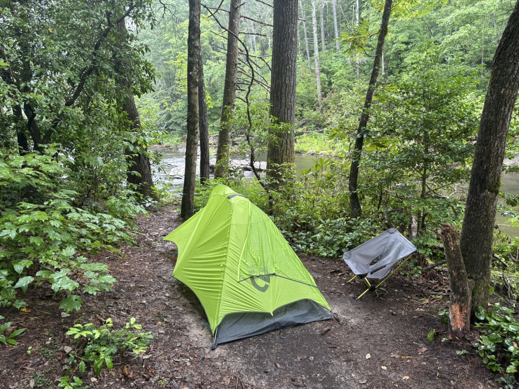 Congress designated the river on May 10, 1974 and it is often used by kayakers, hikers, backpackers, and fisherman as it winds from the North Carolina mountains to Lake Tugaloo. This hike starts at the end of Nicholson Road and follows the Foothills Trail southbound down for 0.7 miles to the Chattooga River Trail. On the decent, you pass both Thrift Lake Falls and Pig Pen Branch Falls which flow in to the Chattooga. No camping is permitted at Thrift Lake Falls, but there are campsites available downstream on the river. This is the first campsite of three once you reach the river.