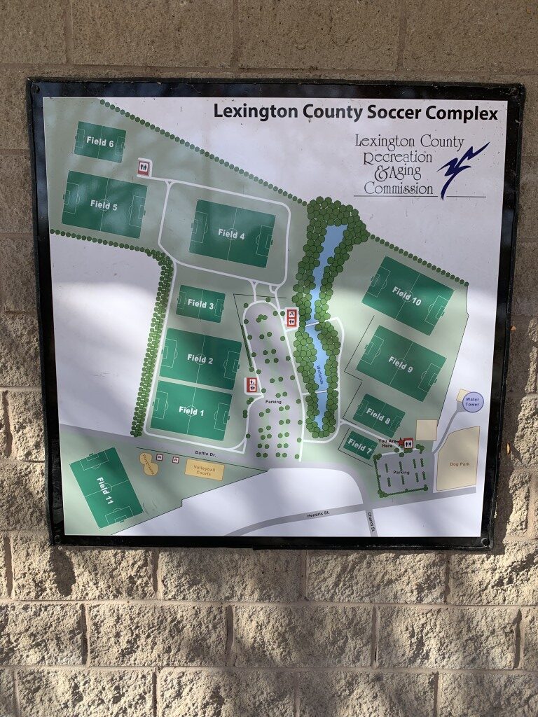 The Gibson Road Complex is a facility located in Lexington, SC with facilities for soccer, volleyball, baseball, tennis, and basketball. There are a series of long and paved walking paths at the complex which also has a large picnic shelter and restrooms on the site. The Lexington County Recreation Commission manages the Gibson Road sports facility – which is also known as the “Lexington Soccer Complex”.  On this hike, I followed a series of flat, paved trails through the complex and walked around the perimeter of the fields. The hiking is easy and is a great way to get some exercise in between sports games.