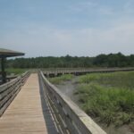 Huntington Beach State Park has a few scenic hiking trails that take you through diverse landscapes, including maritime forests, salt marshes, and sand dunes. These trails are great for birdwatching, wildlife spotting, and enjoying the peaceful coastal environment. This hike is on the Marsh Boardwalk Trail which heads west from the Education Center via a wooden pier for 0.25 miles to the swamp. The boardwalk crosses tidal creeks and there is plenty of wildlife to see here – especially at low tide. Views to the South include Freshwater Lagoon, and the hike is easy and suitable for children of all ages.