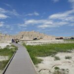 Badlands National Park offers a range of short, scenic hiking trails that showcase the park’s iconic spires, canyons, and layered rock formations. Most trails are easily accessible from Badlands Loop Road (Highway 240) and offer something for all skill levels. The Fossil Exhibit trail is a short and easy hike along a boardwalk near Norbeck Pass in Badlands National Park. In prehistoric times, this area was covered by the ocean, then eventually because an inland swamp as the water receded and began to reform North America. Many fossils are found in this area and the short trail tells the ancient history of the Badlands and the animals that roamed here through a series of exhibits on the walkway. There are outstanding views in all directions with many interesting rock formations on this trail.
