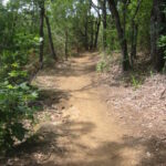 Rockledge Park is located on Fairway Drive in Grapevine, on the North side of Grapevine Lake. The park is a U.S. Army Corps of Engineers facility and it is popular with both mountain bikers and hikers due to the nine mile Northshore Trail. The trail winds along the banks of Grapevine Lake with excellent views at various points along the route. It is near the DFW airport, so don’t be surprised to see some large 767’s passing overhead, and there are often bass fisherman tucked in the coves along the path. However, the trail wanders in/out of a heavily wooded forest that hugs the water, so it is an enjoyable and somewhat wild experience only a short distance from a major metropolitan area.