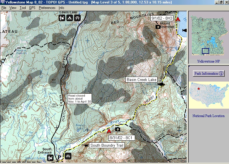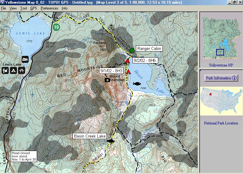 - click for a detailed trip report from this hike in Yellowstone: August 31, 2002 (password required)