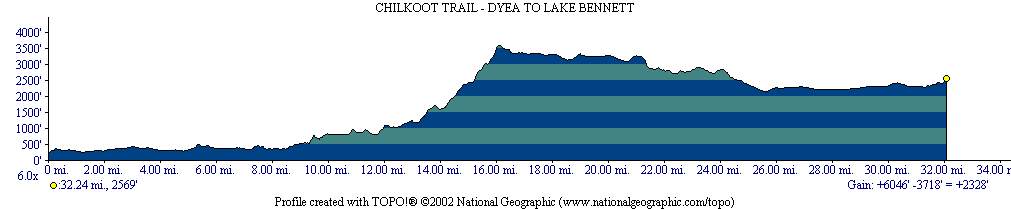 HIGHEST POINT: 3600 feet at Chilkoot Pass