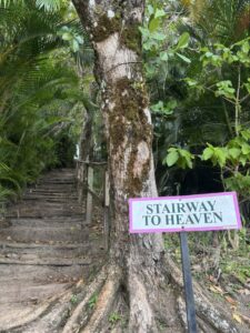From here you make the final climb to the “Stairway to Heaven” which refers to the most famous section of the Tet Paul Nature Trail. This short, moderately inclined staircase is widely considered the best land-based vantage point for viewing the Gros and Petit Pitons. The views from here are outstanding!
