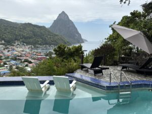 Then we got one more look at the Gros & Petit Piton from a platform at the top of the “Stairway to Heaven”. Sugar Beach sits between them and you can see the boats anchored in the bay below. We visited Sugar Beach multiple times later in the week and it is a nice one. Although there is a private resort here, all beaches on the island are open to the public and we had a chance to swim and snorkel in the bay here.